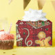 A Colourful Christmas Wrapping Paper Design In Gingerbread Men And House Cookies On Red Plaid Background