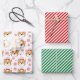 Christmas Corgi Dog and Stripes Wrapping Paper Sheet