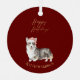 Christmas Red Pet Corgi Dog watercolour Christmas tree decoration with your pet's name. This tree decoration has a script faux gold foil 'Merry Christmas' design on the back.