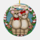 Christmas Couple Bear snuggling inside a candy-cane wreath. Round Christmas ornament