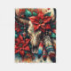 Christmas Cow Bull Skull Poinsettias Feathers Fleece Blanket