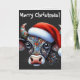 Christmas Cow Bull w/Santa Hat Christmas Card