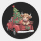 Christmas Cow Highland Cow in Truck Farm Xmas Classic Round Sticker
