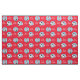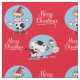 Black and white cartoon cows with Santa hats on fabric with Merry Christmas text