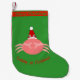 This awesome Christmas stocking features a funny graphic design image of a crab wearing a santa hat. The crab is pink and has big silly eyes on stalks and huge pinchy claws. A fun gift for everyone whether Christmas makes them crabby or not There is customisable text at the top of the stocking so it can be personalised.