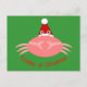 This postcard features a funny graphic design image of a crab wearing a santa hat. The crab is pink and has big silly eyes on stalks and huge pinchy claws. A fun gift for everyone whether Christmas makes them crabby or not