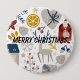 Christmas Button with Crayon Decorations, Santa, Christmas Tree and Stars