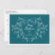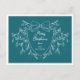 This festive design features a delicate and modern white line art mistletoe framing a sophisticated crest on a modern blue background. Easily customise the wording "Merry Christmas" inside the crest, along with your family name to add a personal touch. The back of the postcard allows you to add a personalised message for your loved ones.