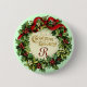 CHRISTMAS CROWN WITH MISTLETOES AND HOLLY BERRIES 6 CM ROUND BADGE