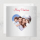 Elegant custom family photo and white ornaments on light silver grey Christmas Greeting Card. Text can be personalised for other Holidays!