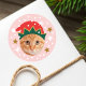 Christmas Custom Photo Festive Elf Hat Funny Pink Classic Round Sticker