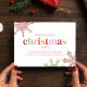 This design features a Christmas cute colourful simple snowflake invitation with a holiday fun whimsical festive party theme with red green pink snow design, stylish trendy colourful typography style, creative minimalist minimal modern, holiday celebration whimsy, celebrate with family friends together event, winter with unique cute block lettering, Christmas holiday simple party invite, corporate business family holiday party