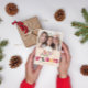 Capture the essence of the season with our Christmas-themed invitations and tags, showcasing customisable photos against a backdrop of a festive Christmas wreath on a retro green watercolor base, complemented by a charmingly modern and unique font for a truly personalised touch to your holiday festivities.