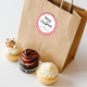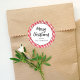 This design features Christmas holiday red simple cute, minimalist minimal gift party favour, fun classic striped stripes stripe, candy cane stripe red white, cute whimsical typography text font, chic festive colourful Xmas, stylish calligraphy script family name, trendy minimal modern style, simple Christmas sticker label, Christmas holiday party supplies