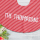 This design features a Christmas holiday cute red custom, a whimsical red striped stripes stripe, a cute festive merry Christmas pattern, a stylish trendy typography font, a custom family classic celebration, a Christmas holiday home décor, a simple minimalist minimal style, a creative cute whimsical lettering, a white text overlay, a Christmas tree holiday decoration.