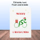 This card depicts a single cyclist in christmas green and wearing a christmas hat. A gift is carried on the back of the bicycle, and there are three golden snowflakes up above. The greeting in red on the front is "MERRY CHRISTMAS", or this can be changed by just typing in the boxes.