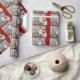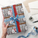 Dalmatian dog wears a Santa hat and looks out the window at the snow waiting for Christmas and watching for Santa dog lovers Christmas holiday wrapping paper