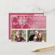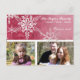 COLOR PALETTE: hot pink and white. DESIGN COLLECTION: A beautiful winter holiday Christmas card with room for 2 photographs. This beautiful, elegant and contemporary hand painted watercolor artwork of detailed snowflakes has been overlaid on a tone on tone damask pattern mixing the modern and classic in an entirely new way. The art and graphic design layout was created by Audrey Jeanne Roberts and is available in several different colour ways for the holidays. Simply add your family photographs via the easy to use template fields and customise the text for a wonderful option for your Christmas card list.