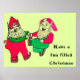 Two cute little Christmas elves do a holiday jig on this fun poster Artist Jo-Ann Hayden