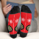 Novelty red Christmas socks patterned with dartboards and snowflakes. Excellent festive gift for darts players and fans.