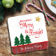 “May your days be merry & bright.” A playful illustration of a red script typography quote and green trees, against gold glitter stars and rustic red country barn wood backgrounds, helps you usher in Christmas and New Year. Feel the warmth and joy of the holiday season whenever you relax with your favourite beverage on this cute and fun personalised name coaster. These high-gloss, hard plastic custom coasters come in a set of six. Matching cards, envelopes, stickers, giftwrap, pillows, housewares, jewellery, and other products are also available in my “Christmas Days Be Merry & Bright” store collection. Order this as a housewarming gift for someone special, or even yourself!