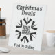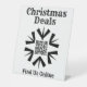 Christmas QR Code Sign. Find us online. Image is a Snowflake with QR Code. Christmas Deals.