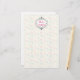 Writing paper with a festive Christmas illustration. A cute whimsical frame in the shape of a Christmas ornament which says Merry Christmas inside. The background on this stationery has a faded pink and blue snowflake pattern.