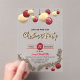 Christmas decorations in red and gold with snow for a beautiful Christmas party invitation.