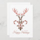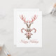 Festive Christmas design features deer head with red antlers, crossed candy canes and customisable "Happy Holidays" text