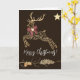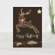 A Christmas deer in gold along with a star and trimmings a lovely holiday greeting card.