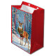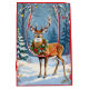 A really sweet holiday gift bag with a festive deer standing in a festive winter wonderland enchanted forest decorated in Christmas fun!