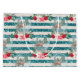 Christmas deer snowball and poinsettias set against a bluish cream stripes background with silver snowy glitter effect