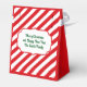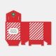 This diagonally striped red and white Christmas favour box is eye catching for the holidays with customisable greeting on the back.