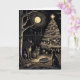 A heartwarming Christmas card featuring a cosy scene of one cheerful dog and two playful cats sharing a festive bowl of food. Set against a backdrop of twinkling holiday lights and soft snow, this charming illustration captures the spirit of togetherness and love during the holiday season.