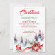 Christmas dinner party classic red baubles and red ribbon snowy fir trees watercolor template invitation instant download