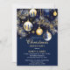 Christmas dinner party gold and navy blue baubles invitation