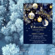 Christmas dinner party classic gold and navy blue white baubles and snowflakes snowy fir trees watercolor template invitation instant download