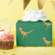 Get ready for a prehistoric Christmas with this funny Velociraptor Santa green wrapping paper! Featuring a mischievous raptor dressed as Santa’s elf with an adorable festive hat, this playful design brings dinosaur humour to your holiday celebrations.