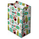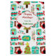 Cartoon dogs, a dog house, a Holiday tree, and a brightly wrapped gift make a cute pattern on this Christmas gift bag. In addition, there is colourful text that says "Feliz Navi-Dog", "We Woof you a Merry Christmas", and "Santa Paws". Personalise the white banner lined in red on the front. Holiday fun! *Clip art used in this design is copyrighted by Encore Software, Inc., which permits use to its licensors. All rights reserved.