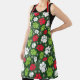 This patterned Christmas or holiday apron is perfect for dog lovers. It features an all over pattern of dog paw prints in white, red, and bright spring green with snowflakes accents set against a dark hunter green background. With its Christmas colors and and dogs themed pattern this apron makes a great gift for dog groomers and dog walkers.