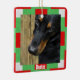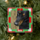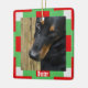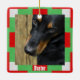 Christmas Dog Pet Photo Name Red Green Square Ceramic Ornament