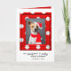 Christmas Dog Pet Photo Simple Red Holiday Frame Christmas Cards features your favourite dog photo inside a red frame with white polka dots on a white background. The text reads "We woof you a merry Christmas" in modern black script. Personalised by editing the text in the text box provided. Fonts can be edited by clicking on "Edit Design". Designed by ©Evco Studio www.zazzle.com/store/evcostudio