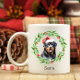 Holiday coffee mug with a watercolor Rottweiler and watercolor Christmas wreath design. Add the dogs name to the coffee cup and it's the perfect gift idea for that dog lover you know, or yourself!