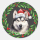 Christmas Dog Siberian Husky Santa Hat Holiday Classic Round Sticker