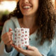 Sip your favourite warm beverage in style as you enjoy the charming scene of festive dogs prancing around in whimsical winter holiday costumes. The design is reminiscent of a cheerful wrapping paper, making it the perfect addition to your holiday mug collection or a delightful gift for dog lovers. 🎁🐕