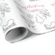 This holiday wrapping paper features a simplistic, black and white Christmas theme. Stencil drawing doodle images with cute little elves, a Christmas tree, Santa's sleigh, and snowflakes are tiled across the wrapping paper. A Merry Christmas greeting is printed above the doodles in an elegant red, script font. A sample name is printed below which you can personalise to include your own custom name or text.