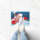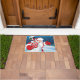 Welcome doormat shown a cute Christmas print of santa and frosty the snowman. Customise this item or buy as is.