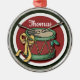 This round metal Christmas tree ornament features a snare drum and drumsticks and a text field for your name to personalise it.