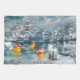 Cute toy yellow rubber duckies wear santa hats and paddle around a snowy winter pond Christmas holiday towel