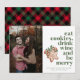 Cute holiday Christmas greeting card for couples featuring your photo and typography design that reads: Eat cookies, drink wine and be merry. Cute design elements surround the text and card is personalised with your photo, message and names. This card reverses to a plaid design.